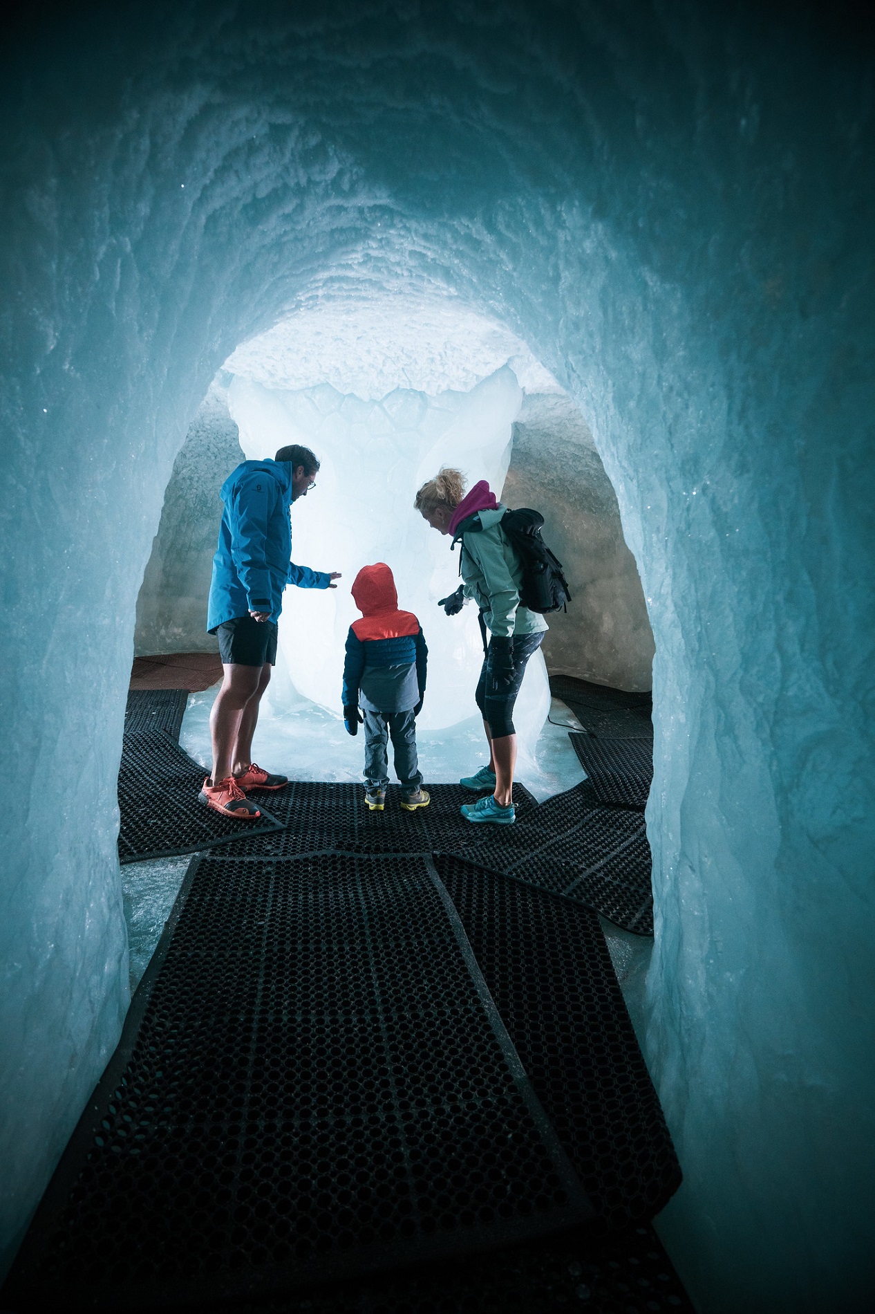 You enter a 200m-long tunnel where you'll be instantly captivated by the icy sculptures that adorn the walls, resembling ephemeral works of art ranging from majestic statues to detailed motifs. The inside of the ice cave seems like a parallel world, where the play of light filtering through the ice and the sparkle of the crystals create an enchanting atmosphere.